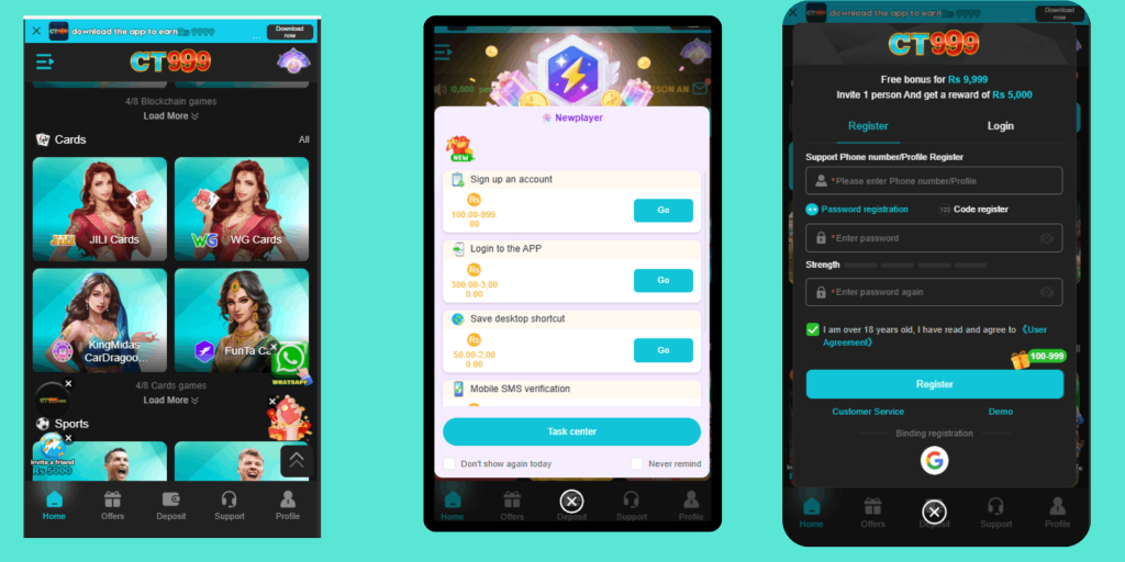 Welcome to CT999 Game Download is new pakistani mobile real money game Apk its offers multiple games one platform like bet games, slots, rummy, money coming and many mores. the game is designed for people who prefer easy rules, fast results, and a smooth mobile experience. and also provide local payment methods like jazz cash easypasai, and bank transfer by using these you can withdraw win easily without any problem and the APK also gives bounces to their users and like daily bonus, weekly bonus, and also you can win pool prizes and jackpots as well.